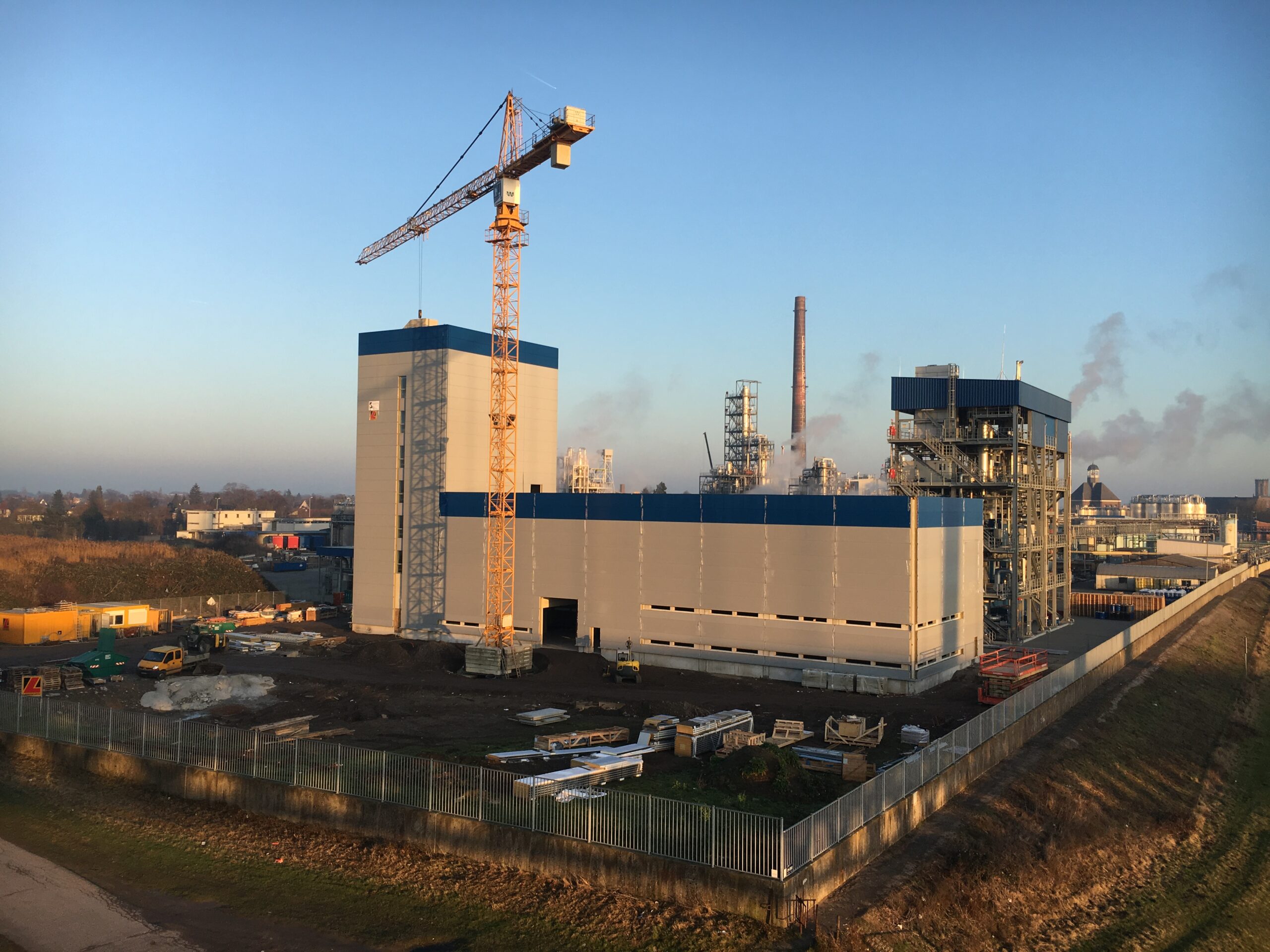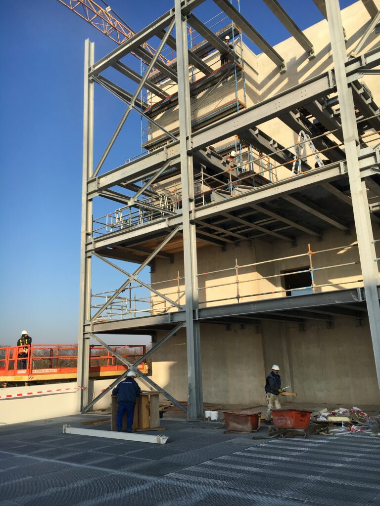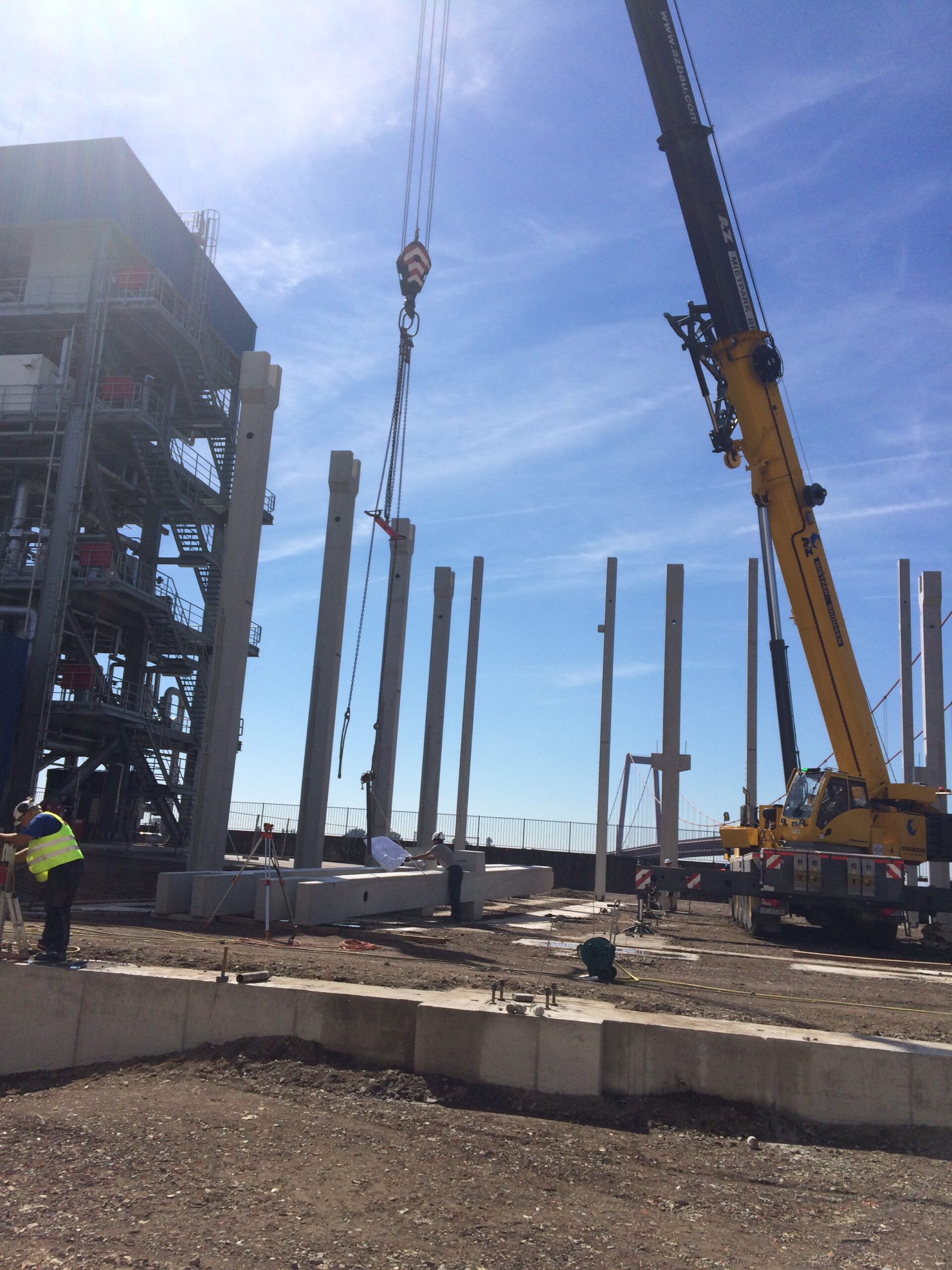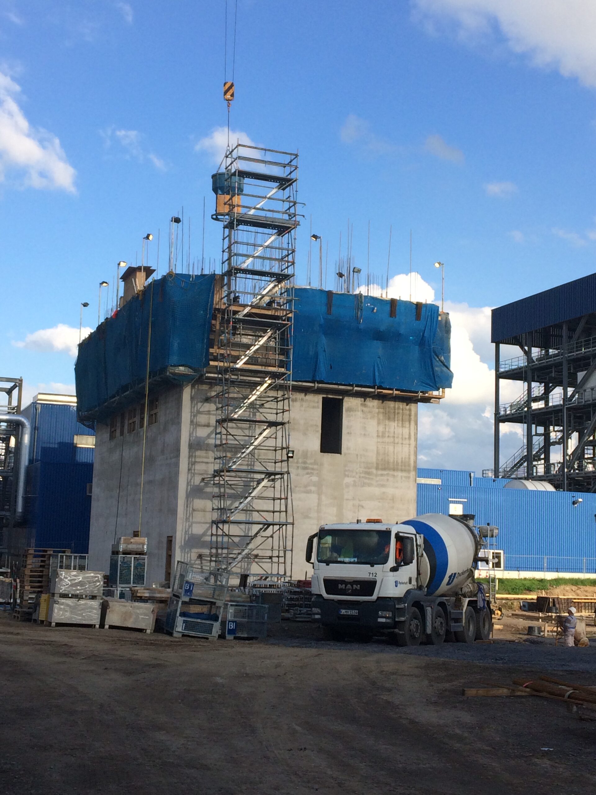 - Ausführung eines ca. 12 m hohen Produktionsgebäudes mit einer Attikahöhe von rund 14 m sowie Turmbauwerk mit ca. 30 m Höhe
