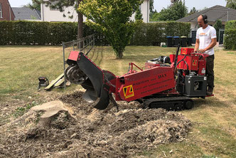 Mit unseren Stubbenfräsen mit Raupenfahrwerk und minimaler Durchfahrtsbreite von 75 cm, gelingt es uns auch in schwierigem Gelände oder an beengten Plätzen, das ausfräsen von Wurzeln möglich