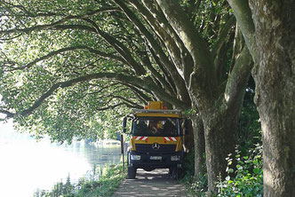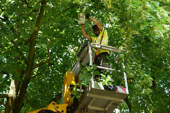 Wir kontrollieren in Verdachtsfällen die betroffenen Bäume mittels Hubarbeitsbühnen oder Seilklettertechnik. Sollte sich ein Krankheitsbild bestätigen, entnehmen wir umgehend die befallenen